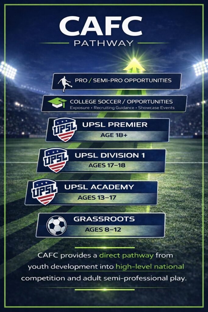 Parents are not only choosing a training schedule. They are choosing the environment, the coaching, and the future of their child’s development. CAFC stands out because we offer: