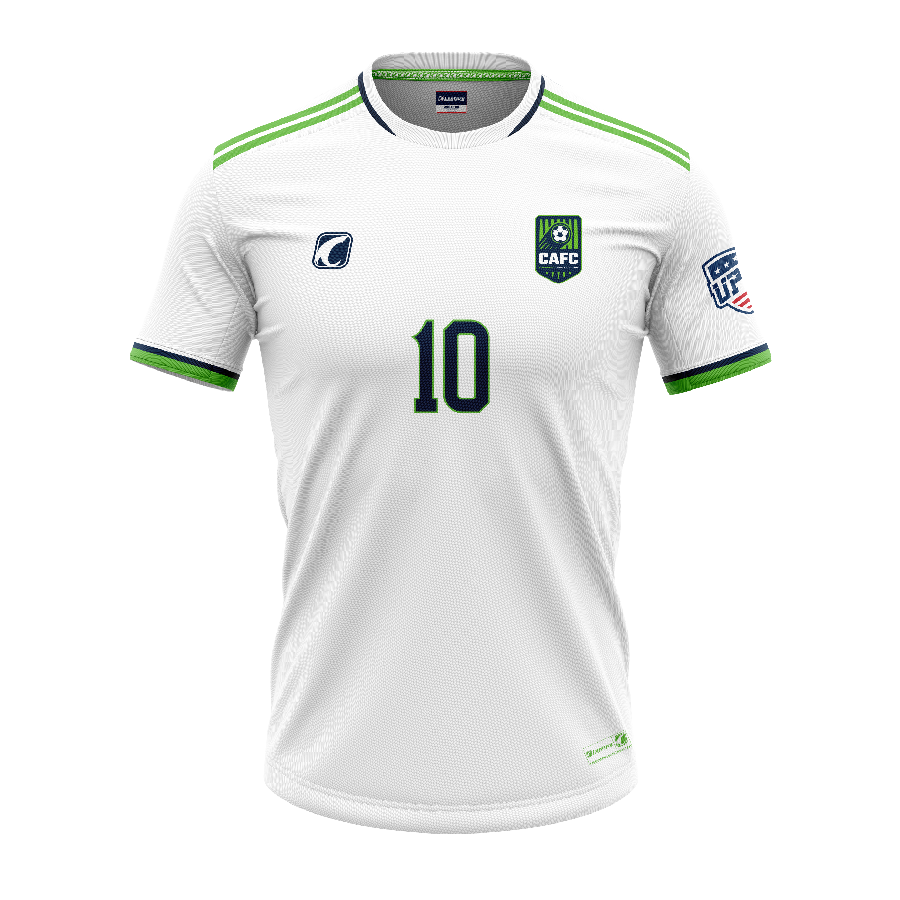 Available in a clean White or green game jersey style.