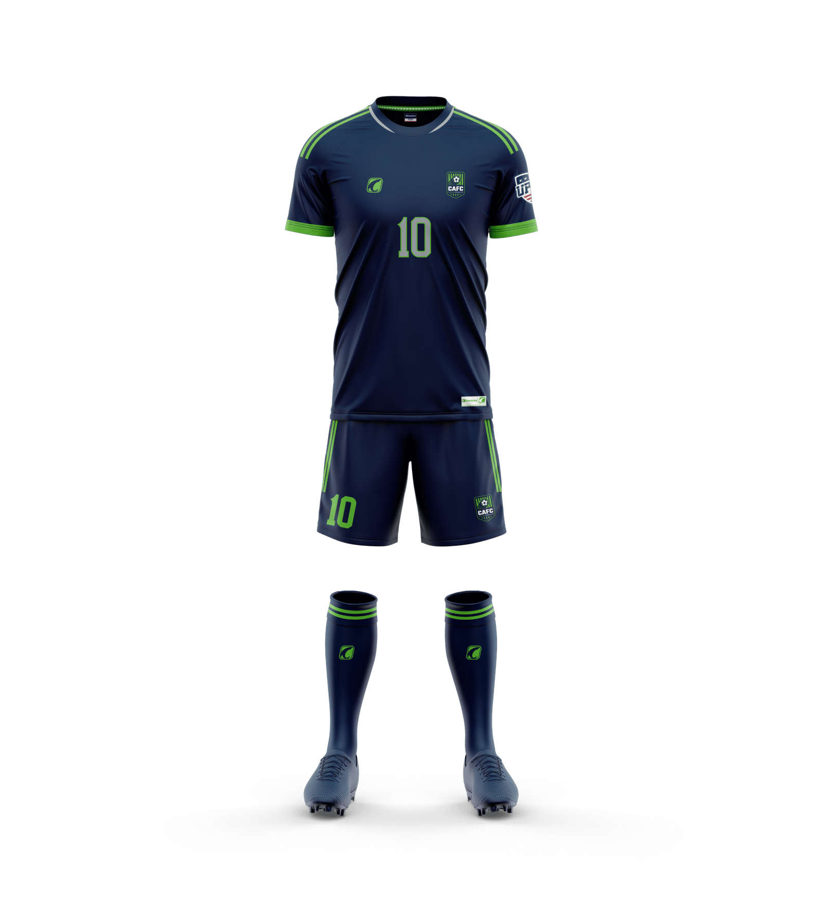 Available in a clean Blue or green game jersey and shorts style.